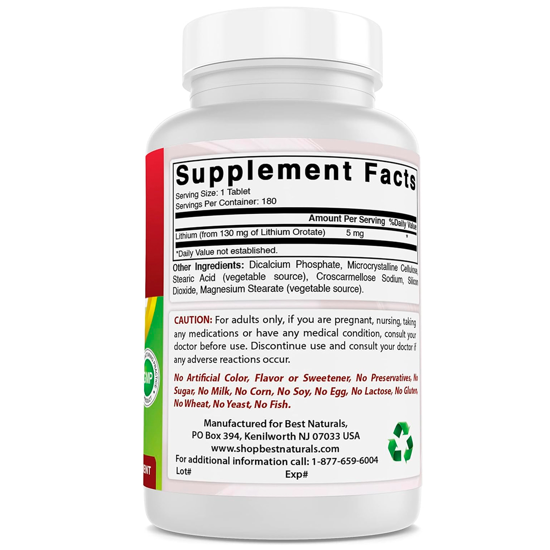 Orotato de Litio Best Natural 5 mg 180 Cápsulas